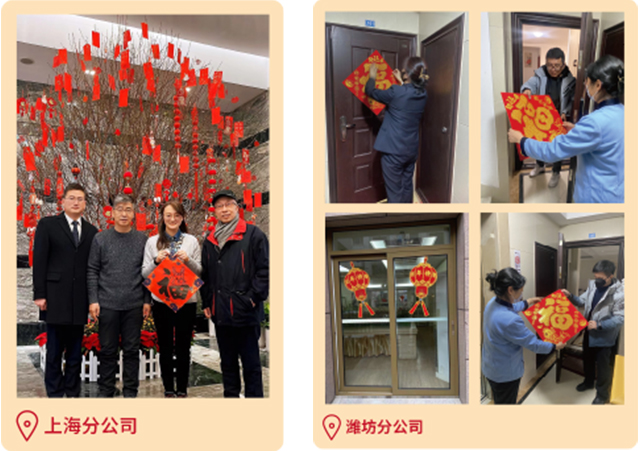 武漢公司貼心為業(yè)主們送上春聯(lián)與暖心的節(jié)日祝福,恭祝業(yè)主與家人一起和和美美過新年。濰坊分公司則是用紅色裝飾園區(qū),烘托節(jié)日熱鬧喜慶的氛圍,并為業(yè)戶送上新年福字。泛海物業(yè)一直以溫暖用心、細(xì)致認(rèn)真的服務(wù)給廣大客戶帶去良好的服務(wù)體驗(yàn)。又感動(dòng),主動(dòng)與工作人員親切留影紀(jì)念。