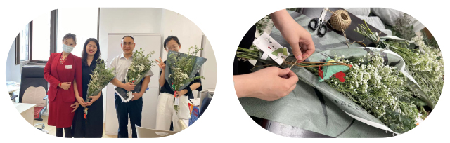 活動(dòng)當(dāng)天,客服人員將精心準(zhǔn)備好的花束送至主樓辦公室每個(gè)人的手中,對(duì)于物業(yè)準(zhǔn)備的艾草花束,業(yè)主們感到非常的驚喜和貼心。除艾草花束外,在市民中心一號(hào)門、三號(hào)門我們的物業(yè)服務(wù)人員還親手為參加活動(dòng)的每位業(yè)主系上五彩繩,據(jù)說它有祈福納吉的美好寓意,系五彩繩的習(xí)俗起源于漢代,至今不衰。
