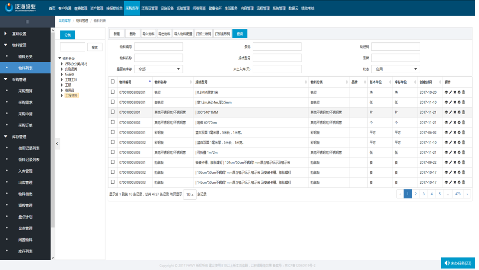 物業(yè)管理涉及的物料種類龐雜,并且物料采購(gòu)及庫(kù)存管理工作精細(xì)化程度較高,入庫(kù)、出庫(kù)及日常庫(kù)存盤(pán)點(diǎn)耗時(shí)費(fèi)力。泛海智慧服務(wù)積累多年物料管理經(jīng)驗(yàn),將物料分門(mén)別類并固化至平臺(tái)中。同時(shí)制定物料申領(lǐng)流程,集中申請(qǐng)、統(tǒng)一采購(gòu),實(shí)現(xiàn)條線化管理、提升集采效率。通過(guò)系統(tǒng)實(shí)現(xiàn)采購(gòu)與庫(kù)存聯(lián)動(dòng),滿足物料從采買(mǎi)、入庫(kù)、出庫(kù)的全程跟蹤。針對(duì)日常庫(kù)存盤(pán)點(diǎn),平臺(tái)將依據(jù)物料的流通記錄生成詳細(xì)的庫(kù)存清單,以此簡(jiǎn)化庫(kù)管員的盤(pán)點(diǎn)工作。
